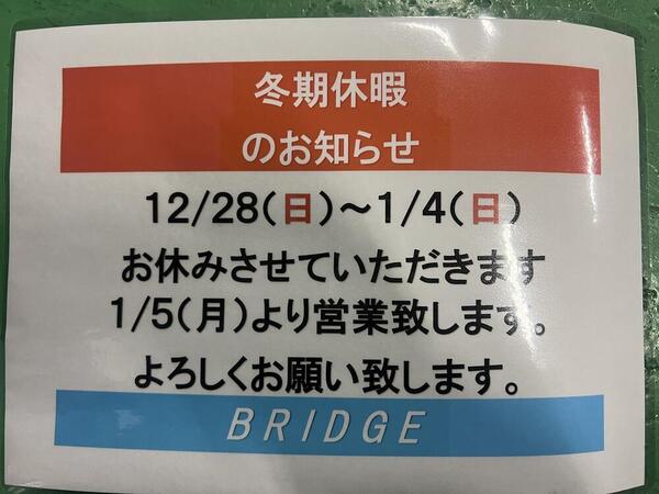 12月28日〜1月4日までお休みを頂きます。